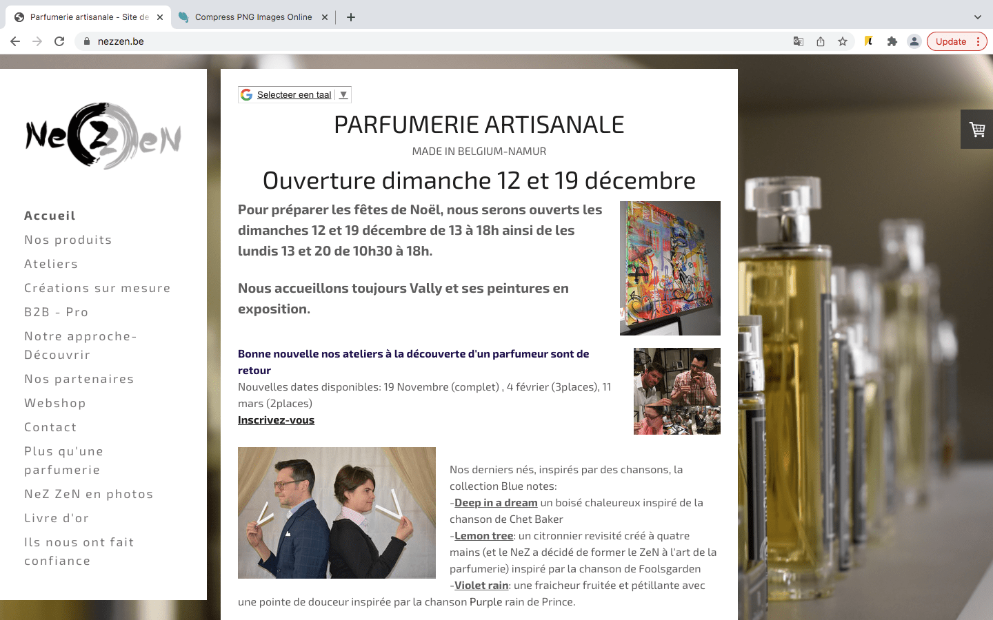Nez zen est une parfumerie artisanale belge, qui vend des produits de qualité et VEGAN. On vous y propose également de créer votre parfum ou parfum d’ambiance qui vous donne une exclusivité sur la formule.