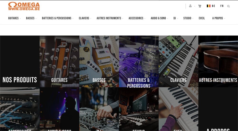 Le site Omega ou Omega Music est un site e-commerce spécialisé dans la vente d’instruments de musique en tout genre. Le site est accessible grâce à ce lien: https://www.omega.be. En plus du site internet, Omega possède un magasin qui se situe dans la ville de Mons et qui est, aussi, le siège social de l’entreprise.
